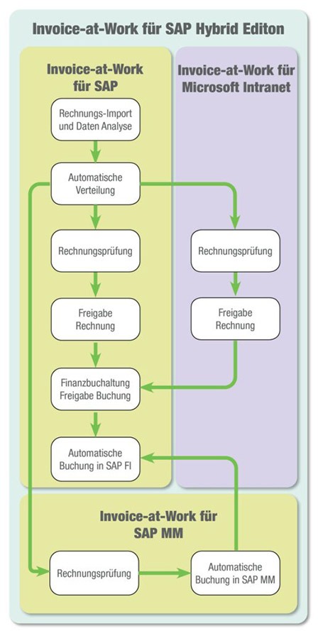Die Hybrid Edition von Invoice-at Work 365 SAP verlängert den SAP-basierten Rechnungsprüfungs-Workflow in das Microsoft Intranet.